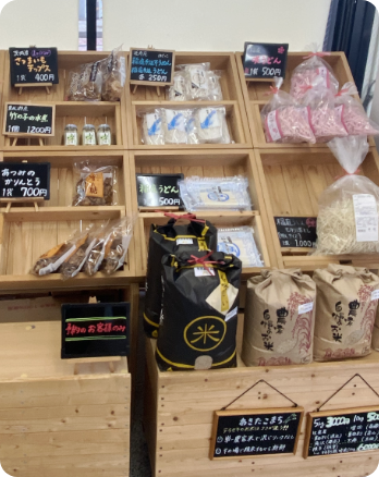 店内には、旬のフルーツや地元のスイーツをはじめ、お米や定番のお菓子など、さまざまな商品を取り揃えています。